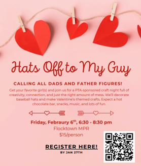 Fri 6: PTA Hats off to my Valentine - Father/Daughter crafting event (Floctkown MPR 6-8pm)