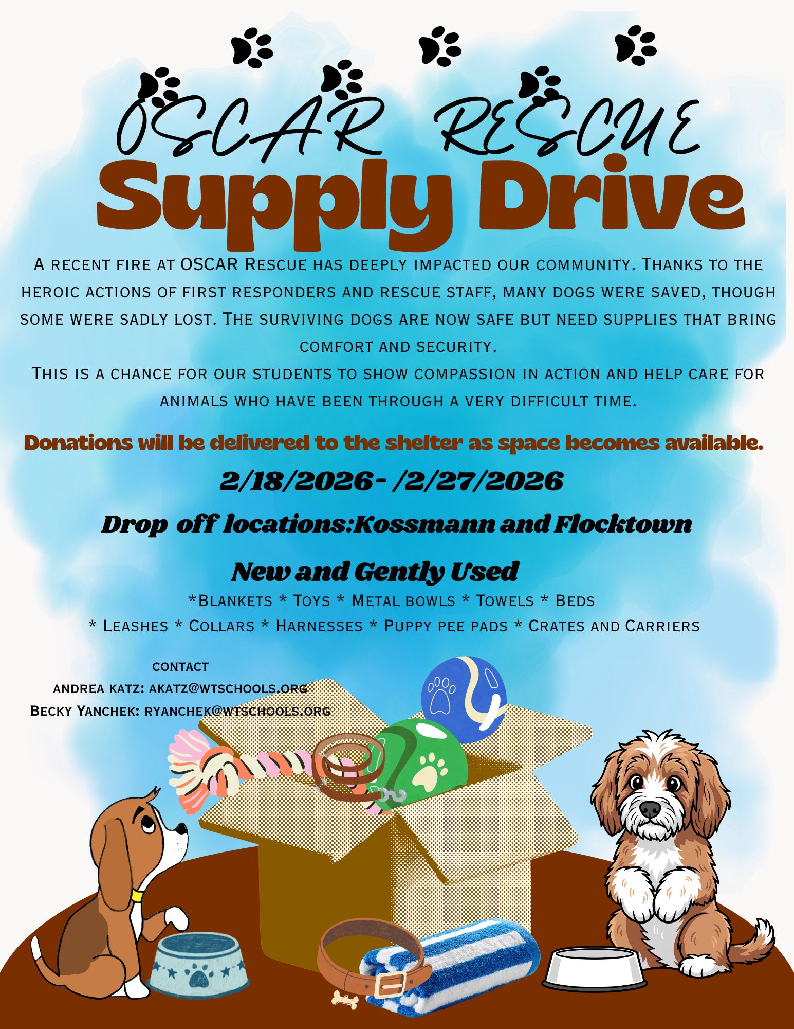 For rescue dogs, a shelter is more than a building. It is a place of safety, healing, and second chances. The people at OSCAR pour their hearts into giving these animals love and care every day and right now, they need to feel the support of their community. This is where our students and families can make a meaningful difference. A simple donation such as a blanket, a harness, or a toy, can bring comfort to a dog who has been through a very difficult time. It also gives our children the chance to practice empathy and see how acts of kindness truly matter. Together, we can help bring comfort and care back to animals who need it most.