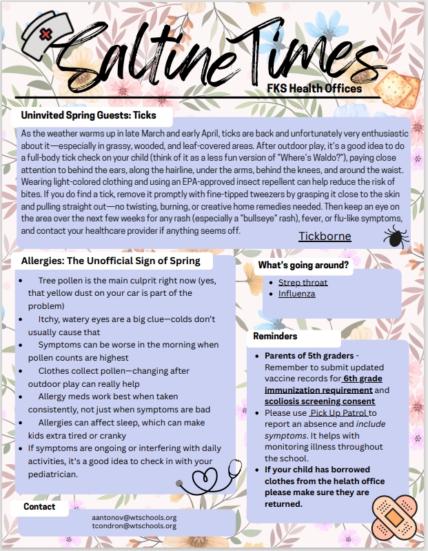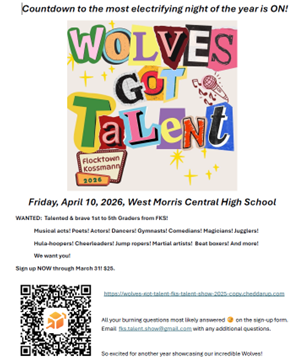 On behalf of the Flocktown-Kossmann faculty we wish all of our Wolves a safe, healthy and fun Spring Break. We hope you have a chance to recharge and get outside if the weather cooperates.