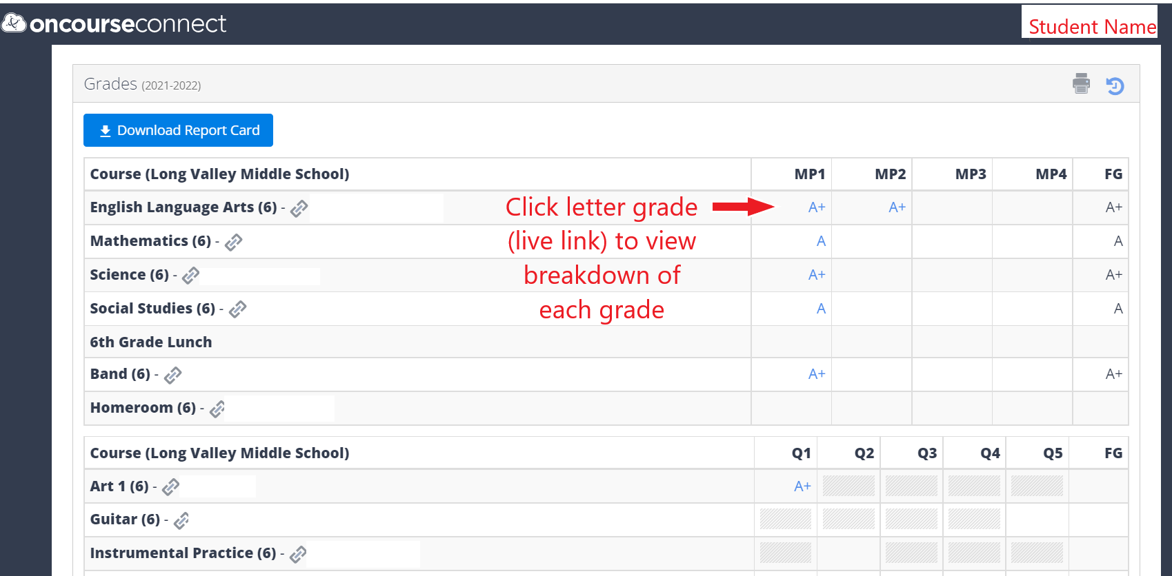 END OF MARKING PERIOD #2: Last week (2/2) was the final day of MP#2. The OnCourse Portal is now live for all students and families with finalized grades.